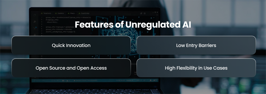 Developers can investigate unusual or dangerous ideas that might not make it through stringent regulatory screening thanks to unregulated AI. Additionally, this independence can result in ground breaking findings and completely original AI applications that compliance restrictions would have otherwise postponed or prevented.